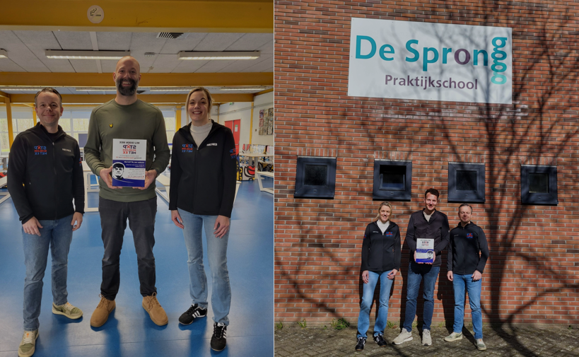 De eerste schoolborden van de stichting Stop schelden met KK zijn in ontvangst genomen door De Sprong en De Argo in Terneuzen. De borden krijgen een mooie plek in de school, zodat iedereen meteen ziet: hier werken we samen aan een veilige en respectvolle omgeving.